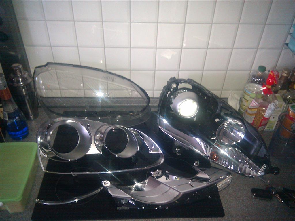 so,da mich scho de ganze zeit de hellen scheinwerfer gestört haben,hab ichs heut mal angepackt ganz sche schwer,des is halt echte qualität,5 stunden hat scho mal der eine gedauert zum auseinanderbauen...